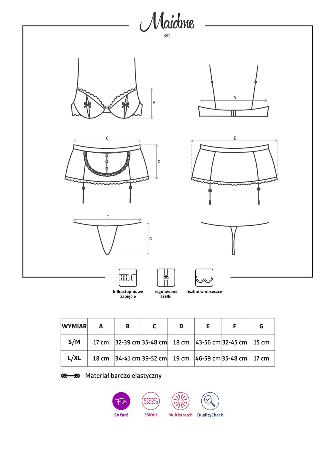 Bielizna-Maidme komplet 5-częściowy L/XL