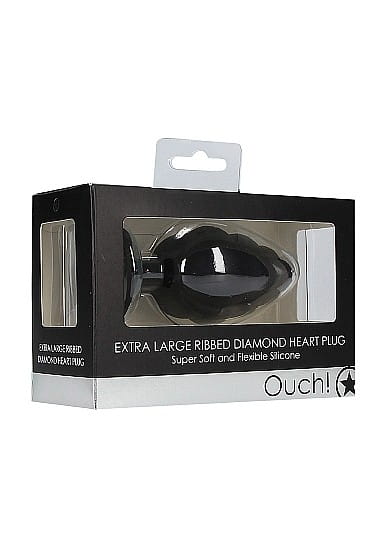DUŻY SILIKONOWY ZDOBIONY KOREK ANALNY - OUCH! Extra Large Ribbed Diamond Heart Plug Black