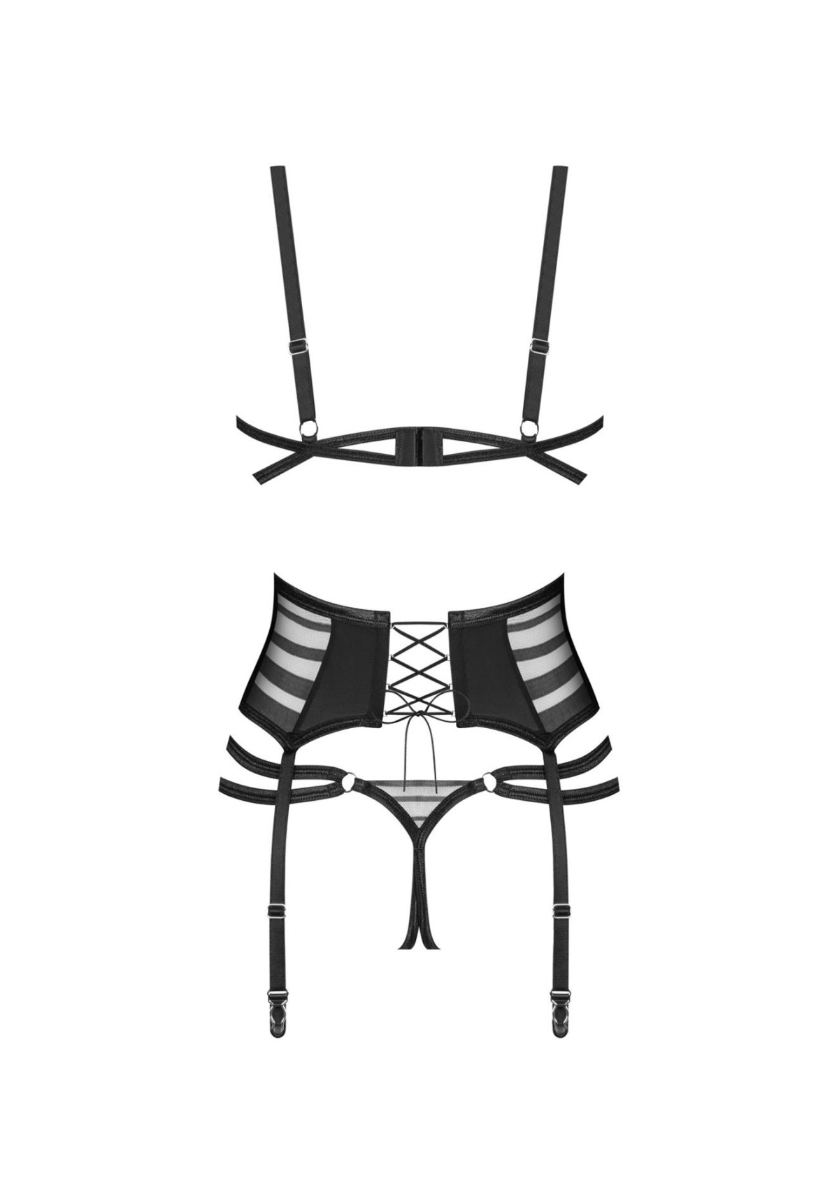 stanik, otwarte stringi oraz pas do pończoch