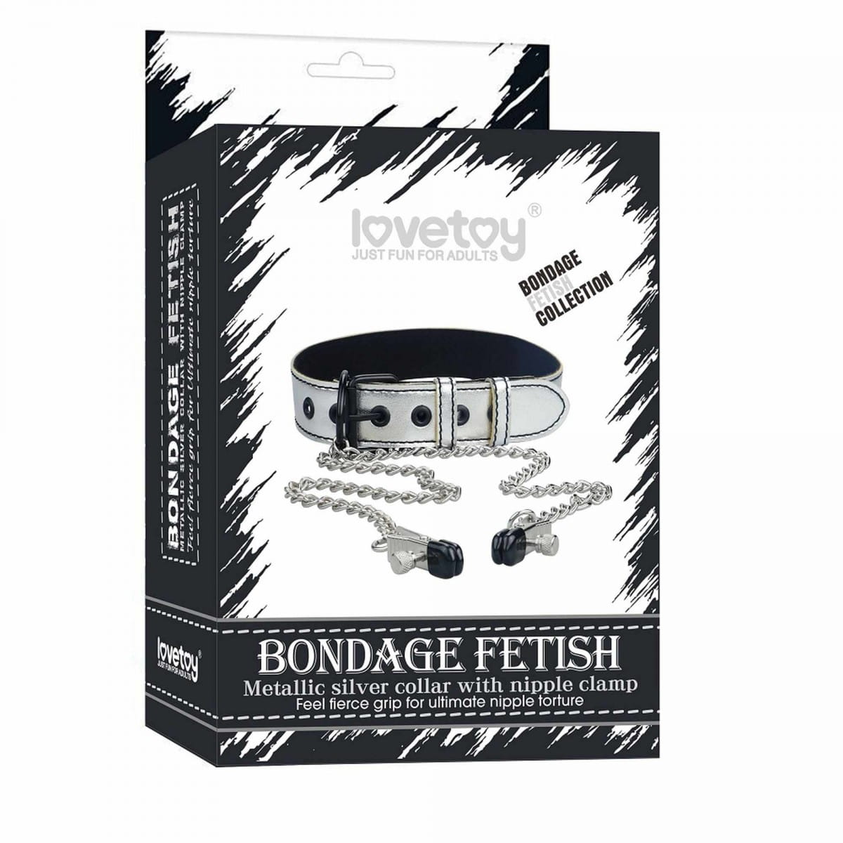 Metallic Silver Collar With Nipple Clamp