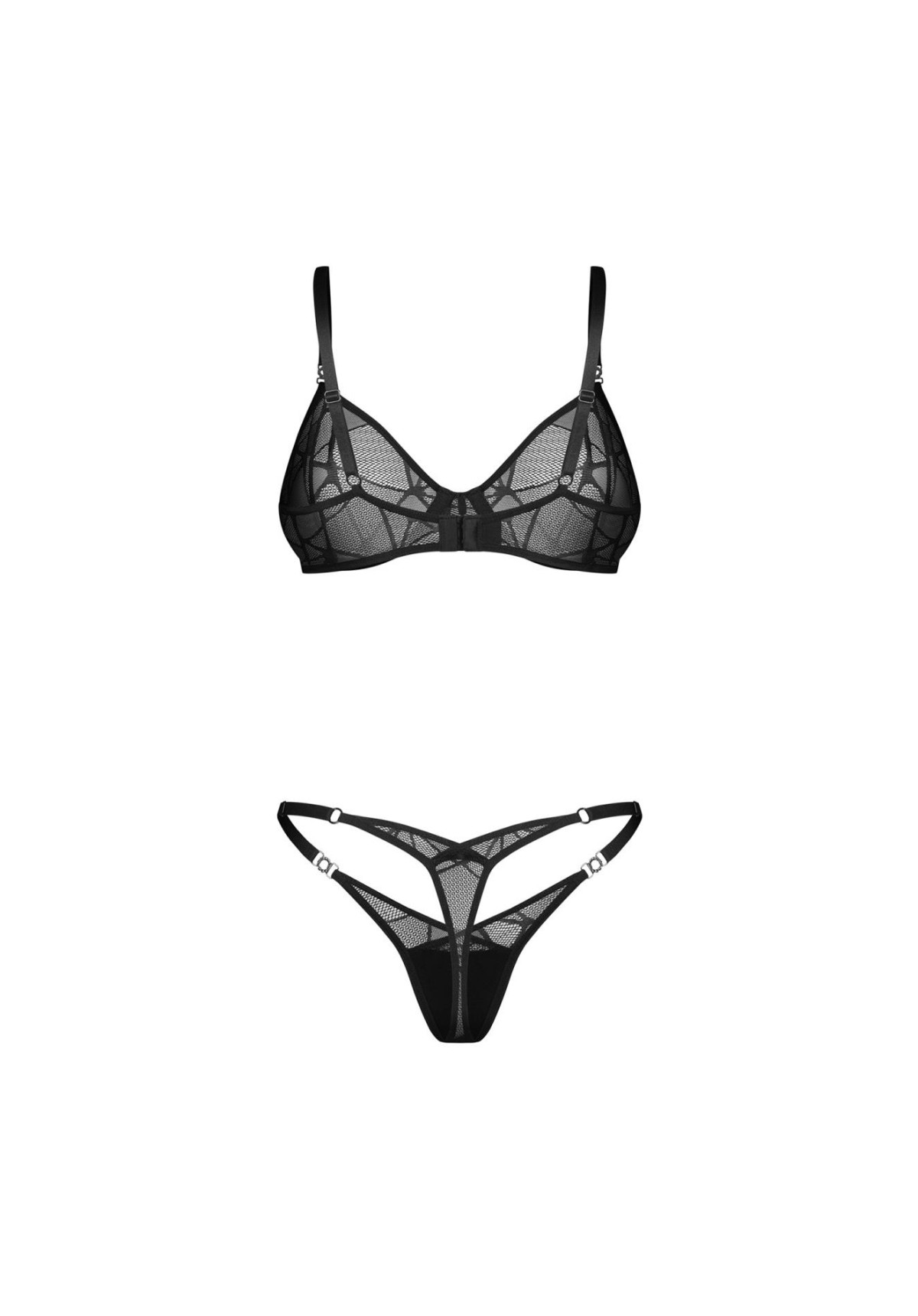 Zmysłowa lekkość i elegancja w jednym – dwuczęściowy komplet z transparentnej siateczki podkreśla sylwetkę i przyciąga spojrzenia.