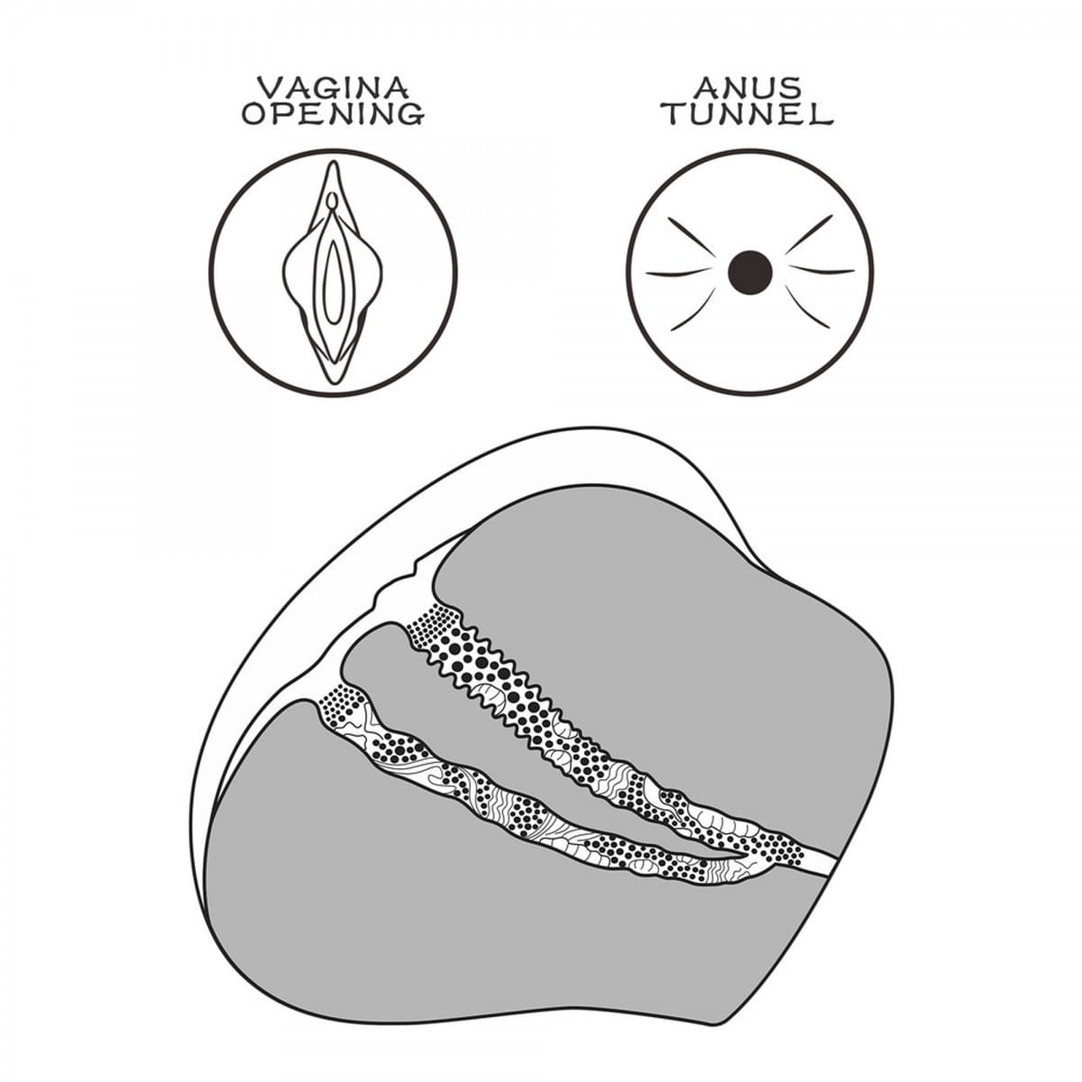 Pięknie zaprojektowany z ładnie rozłożoną pochwą i seksownymi różowawymi wargami sromowymi. Masturbator wykonany jest z ultra realistycznego materiału. Ciaśniutka szparka waginy oraz anus posiadają wewnątrz liczne prążki, które z dokładną precyzją czule wymasują penisa, dając uczucie prawdziwych doznań