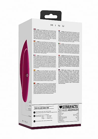 Ive stanowi nowy fenomen w świecie luksusowychproduktów sprawiających przyjemność dorosłym.Minu ma charakterystyczny kształt, który sprawia, że jestniezwykle zmysłowy. Skrzydełka na zabawce zapewniająsilną stymulację po dociśnięciu do pochwy. Małakońcówka na froncie jest doskonała do stymulacji nawetnajmniejszych części ciała. Dziesięć różnych poziomówwibracji jest teraz o wiele silniejszych od innych zabawekdostępnych na rynku, ze względu na nową i innowacyjnątechnologię umożliwiającą wielokrotne ładowanie. Wibratorlay-on jest wyspecjalizowany w stymulacji łechtaczki,został wykonany z wysokiej jakości wodoodpornego silikonu.