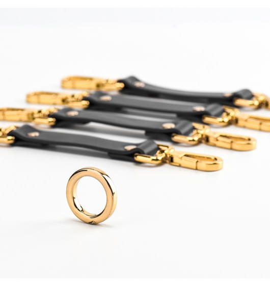 Metalowe elementy charakteryzują się ciężkim odczuciem i opływową konstrukcją, zapewniając najwyższą jakość. Leather Hogtie marki UPKO łączy w sobie funkcjonalność i estetykę. Klipsy na końcu skórzanego paska służą do łączenia z innymi  akcesoriami do krępowania. Z powodzeniem możesz stworzyć zestaw, uzupełniając kolekcję o UPKO Leather Ankle Cuffs oraz Handcuffs.