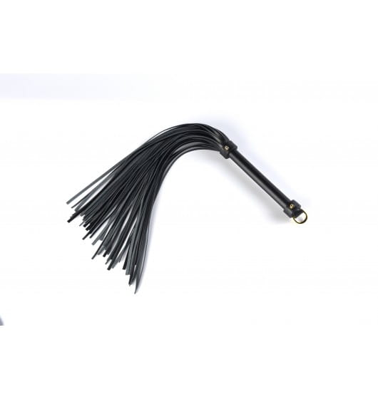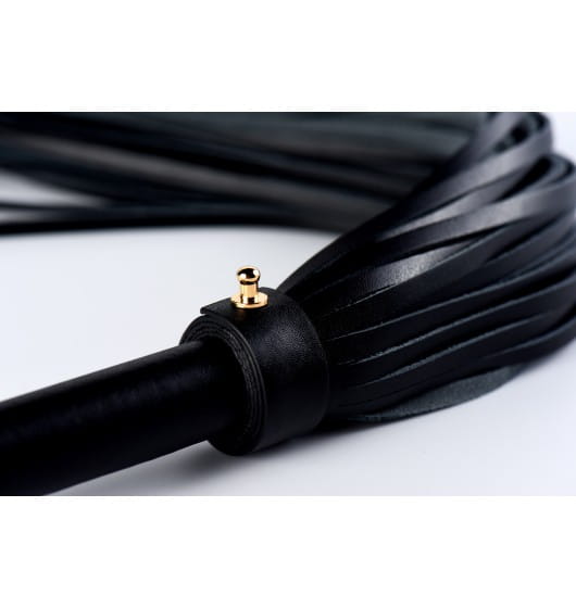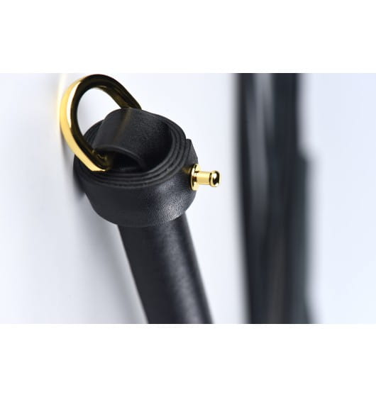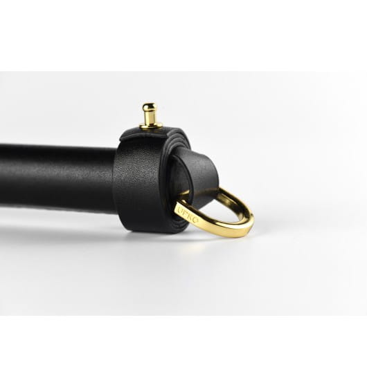 Całkowicie owinięty skórą pejcz z dodatkiem metalowych detali, zapewnia szczególny efekt wizualny. Na końcu uchwytu UPKO Leather Flogger, znajduje się D-ring z wytłoczonym logo marki, który umożliwia zawieszenie gadżetu w celu łatwiejszego przechowywania.