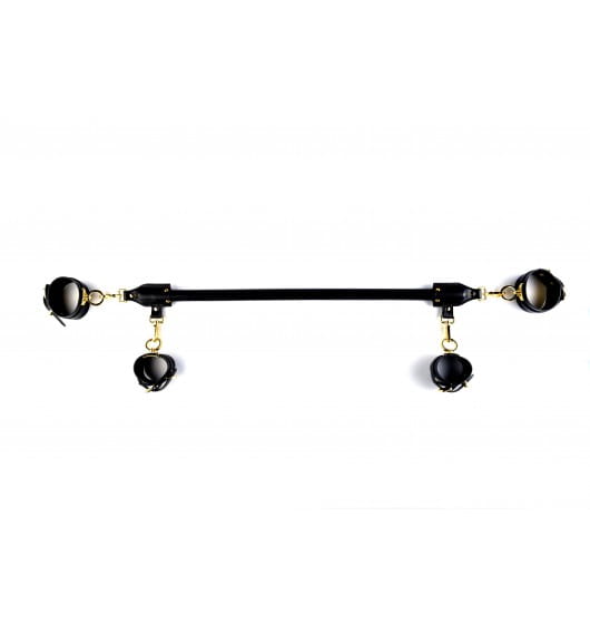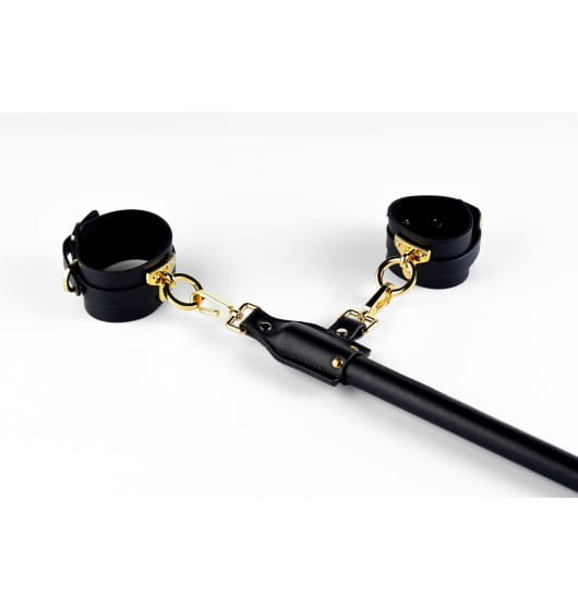 Rozpórka marki UPKO jest w całości owinięta skórą, a złote dodatki na obu końcach dodatkowo podkreślają piękno i wyjątkowość. Karabińczyki mocowane na końcach umożliwiają przypięcie kajdanek, czy uprzęży na kostki.