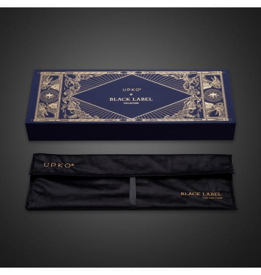 Pejcz z nowej kolekcji UPKO Black Label – kolekcji bardzo luksusowych akcesoriów do BDSM wykonanych z wysokiej jakości materiałów z różnych stron świata. Włoska bydlęca skóra stanowi główny materiał. Metalowe elementy wykonane zostały z mosiądzu pokrytego galwanicznie złotem. Aby dodać połysku użyto czeskich cyrkonii, a dla uzyskania efektu unikalności użyto skóry z jaszczurki indonezyjskiej (pozyskiwanej został zgodnie z Konwencją o międzynarodowym handlu dzikimi zwierzętami i roślinami gatunków zagrożonych wyginięciem)