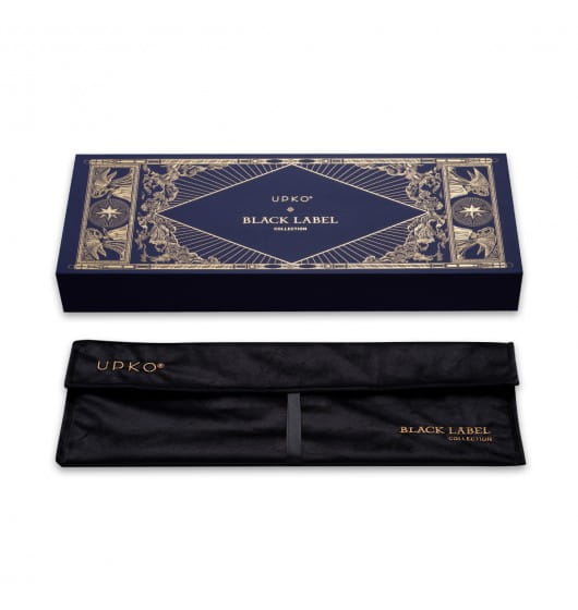 Packa z nowej kolekcji UPKO Black Label – kolekcji bardzo luksusowych akcesoriów do BDSM wykonanych z wysokiej jakości materiałów z różnych stron świata. Włoska bydlęca skóra stanowi główny materiał. Metalowe elementy wykonane zostały z mosiądzu pokrytego galwanicznie złotem. Aby dodać połysku użyto czeskich cyrkonii, a dla uzyskania efektu unikalności użyto skóry z jaszczurki indonezyjskiej (pozyskiwanej został zgodnie z Konwencją o międzynarodowym handlu dzikimi zwierzętami i roślinami gatunków zagrożonych wyginięciem)